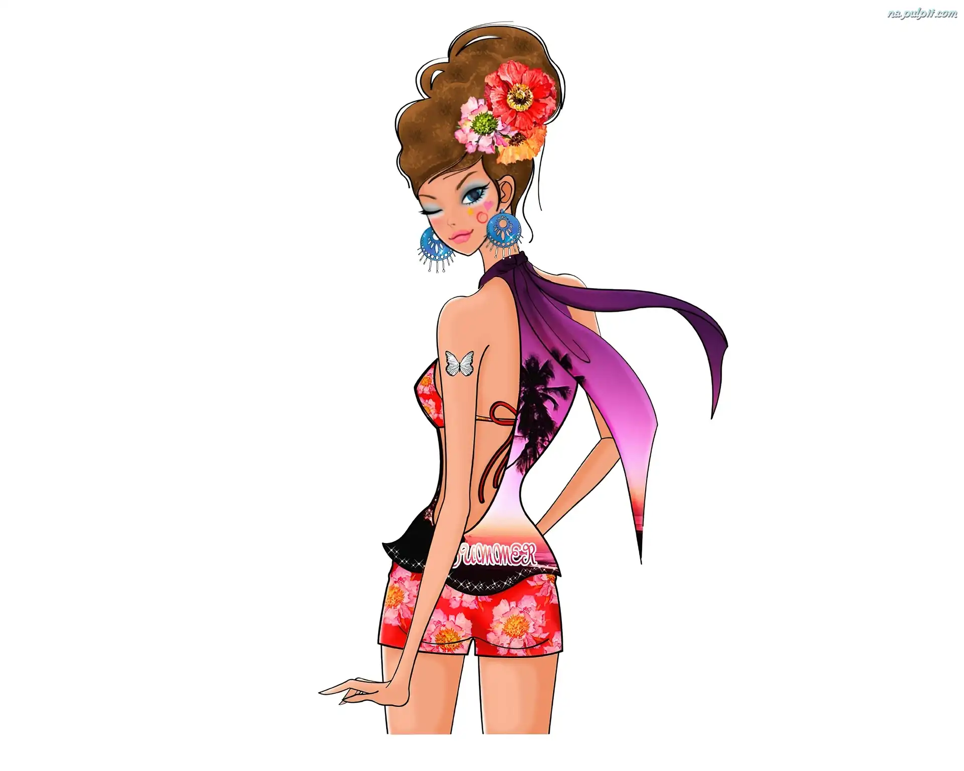 Kobieta, Modny, Letni, Strój Na Pulpit