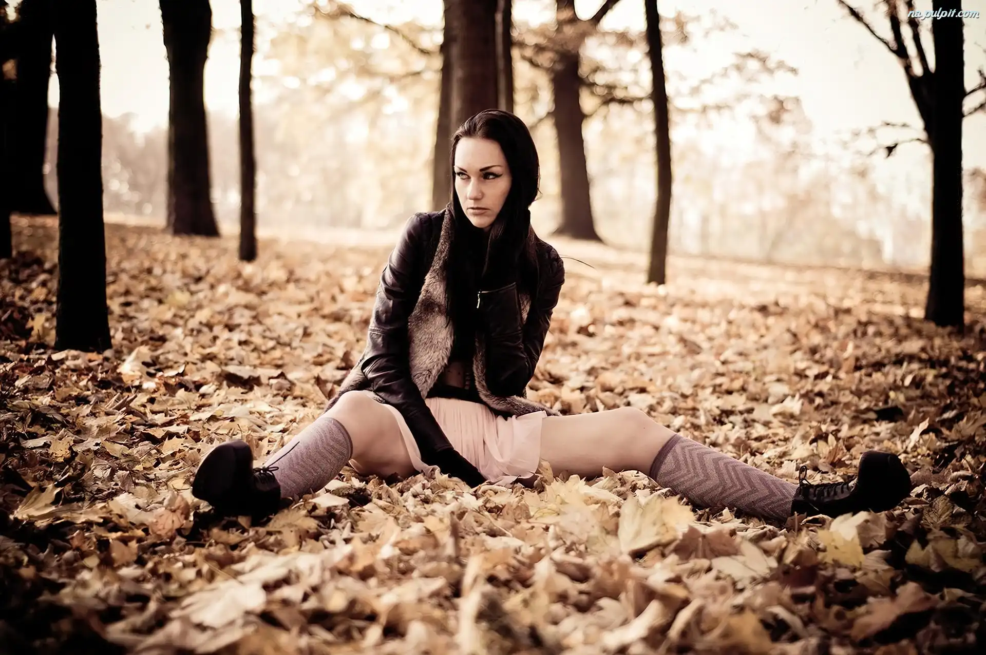 Liście, Kobieta, Drzewa Na Pulpit