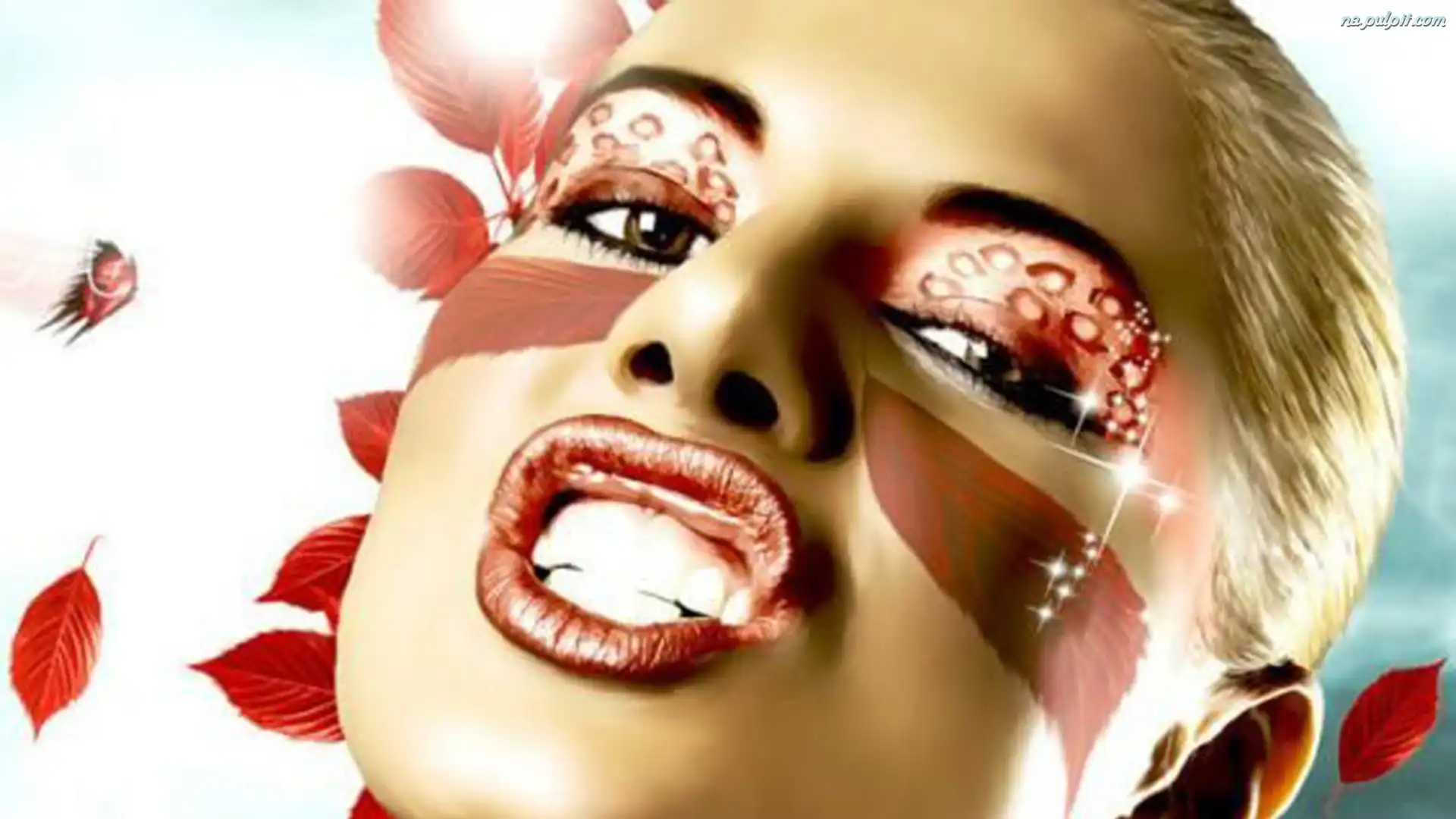 Liście, Kobieta, Makijaż Na Pulpit