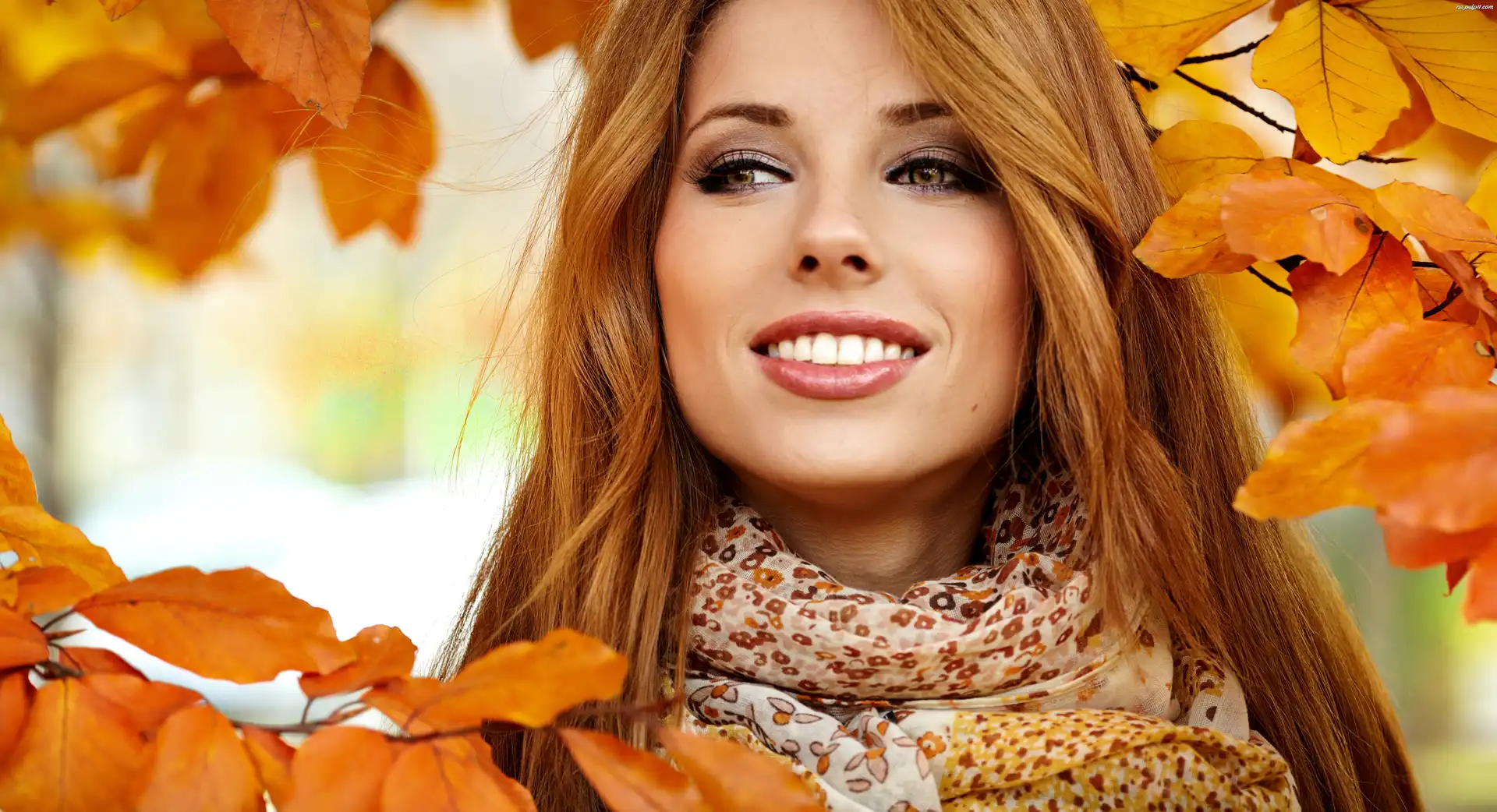 Liście, Kobieta, Makijaż