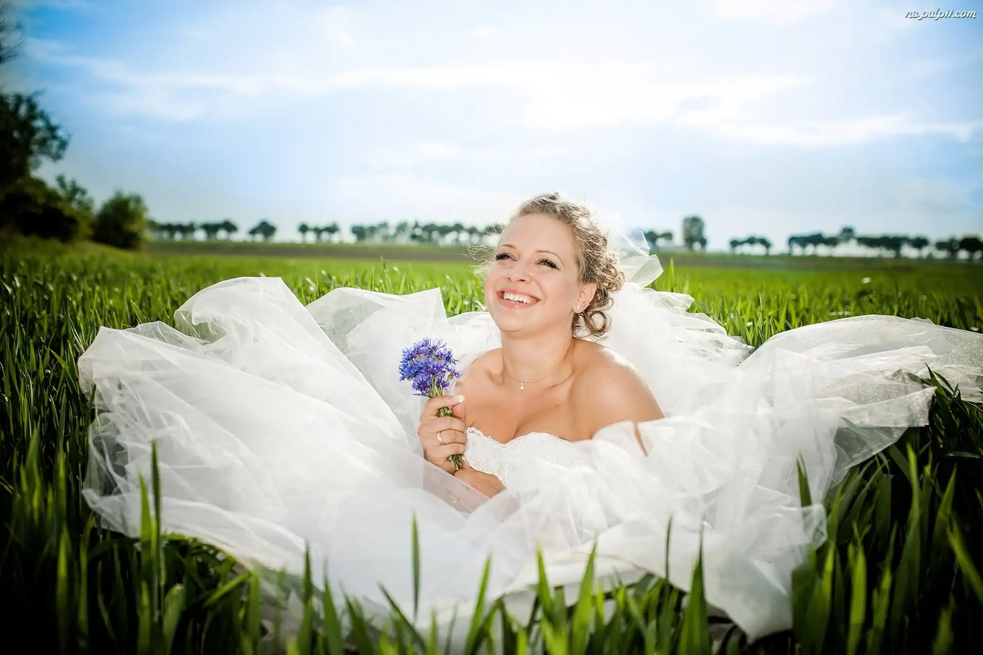 Łąka, Ślubna, Kobieta, Suknia Na Pulpit