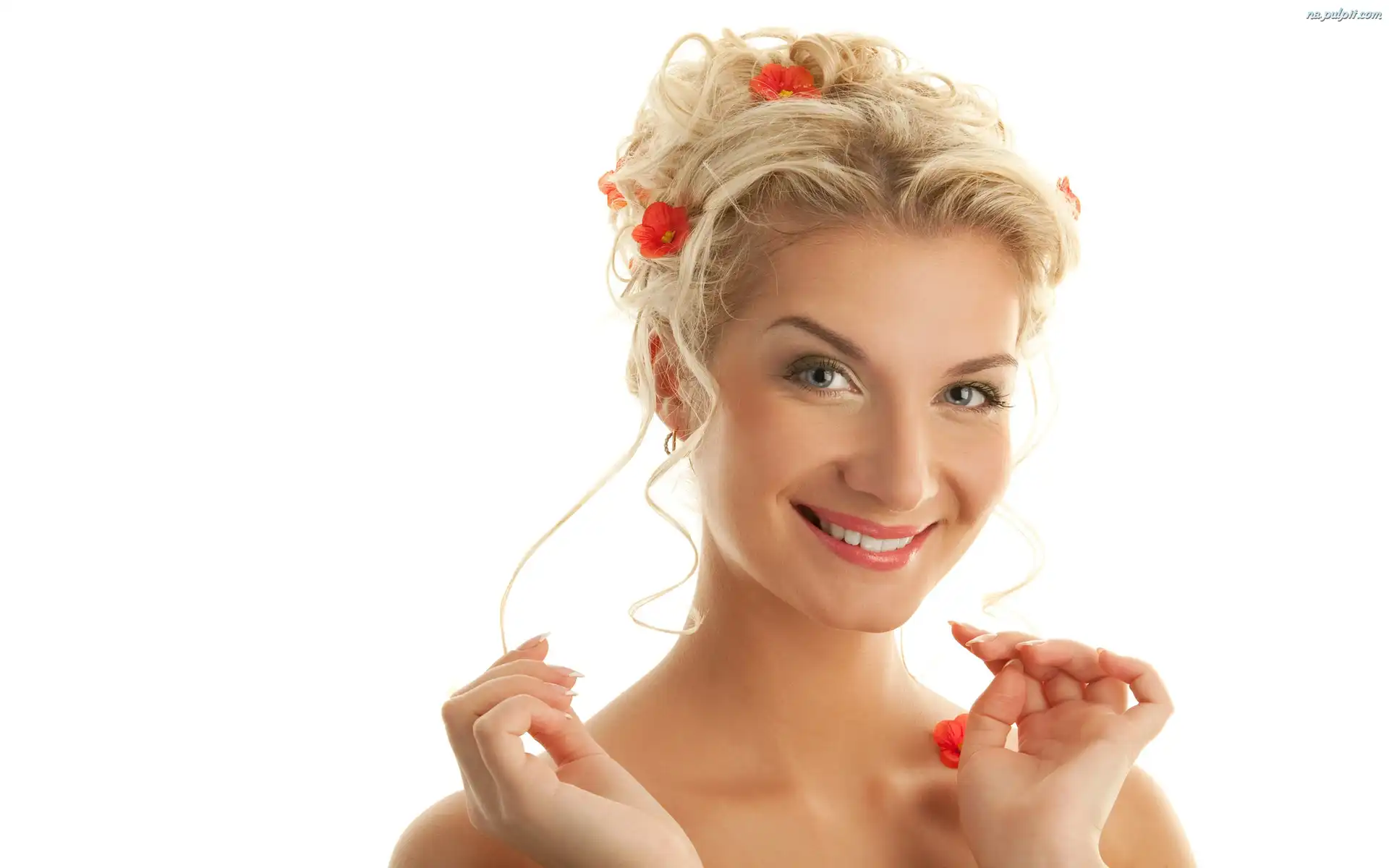 Kobieta, Dłonie, Makijaż, Kwiatki Na Pulpit