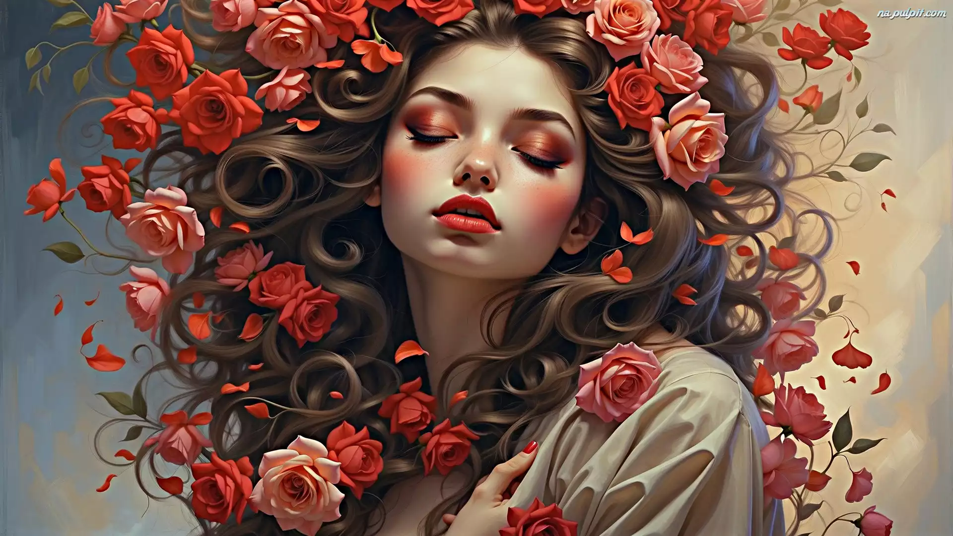 Czerwone, Kobieta, Makijaż, Róże, Kwiaty Na Pulpit