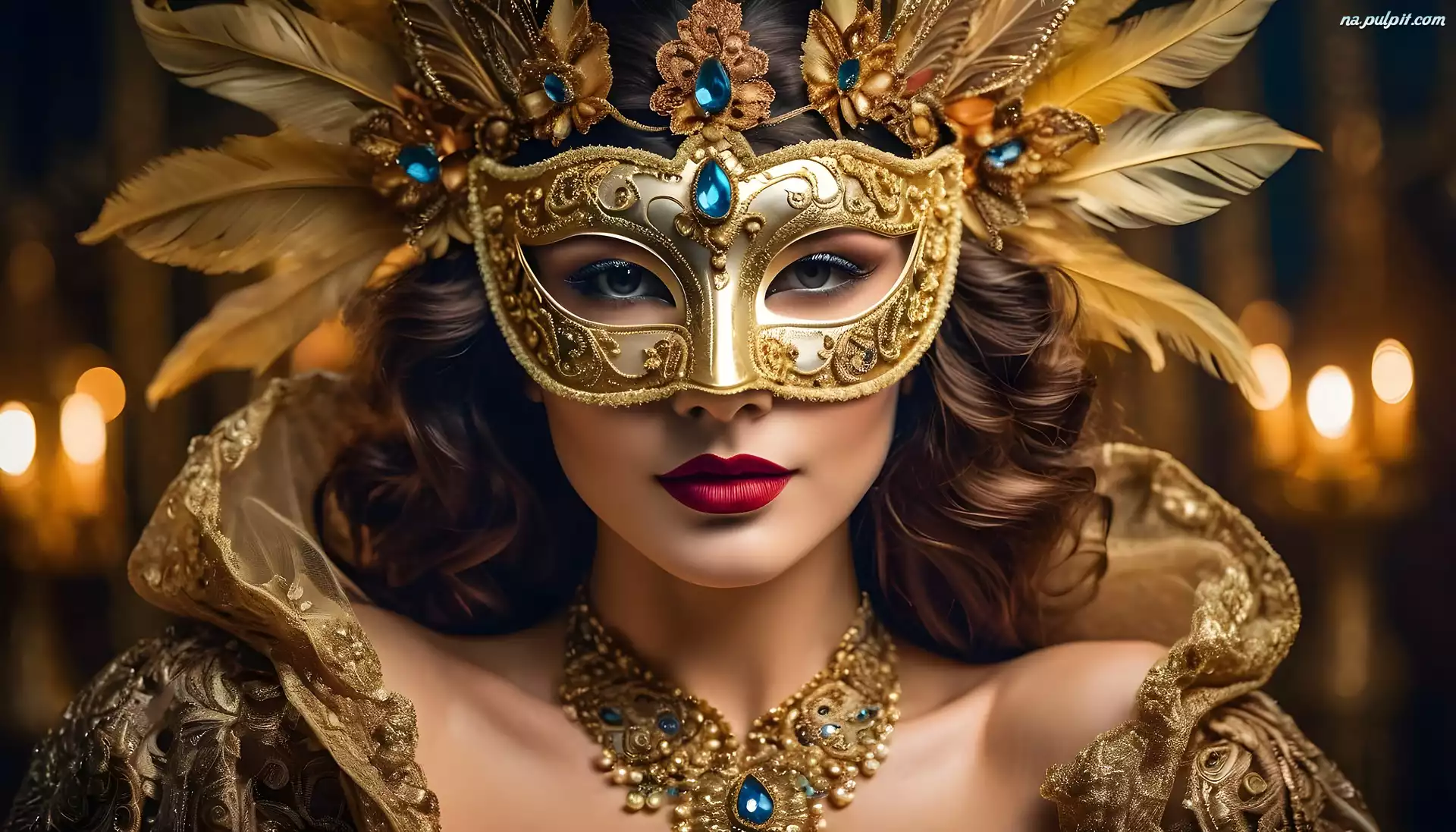 Biżuteria, Kobieta, Maska, Pióra, Karnawałowa