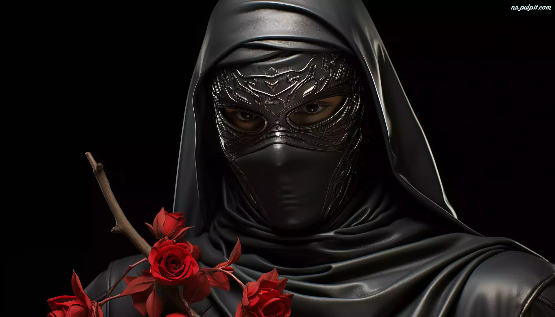 Ciemne, Kobieta, Maska, Tło, Kwiaty