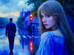 Ulica, Kobieta, Mężczyzna, Grafika, Deszcz