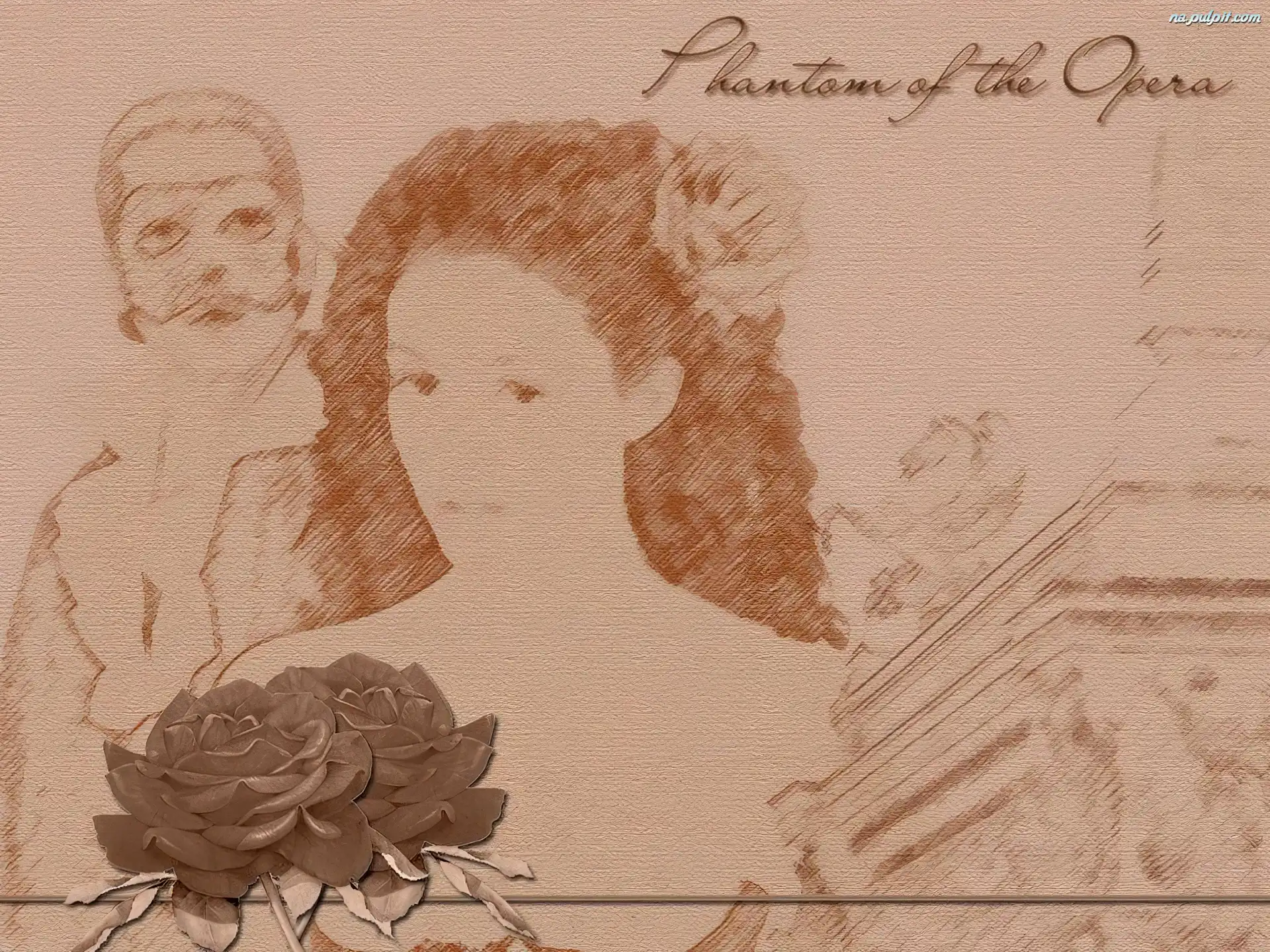 róża, kobieta, szkic, Phantom Of The Opera, mężczyzna Na Pulpit