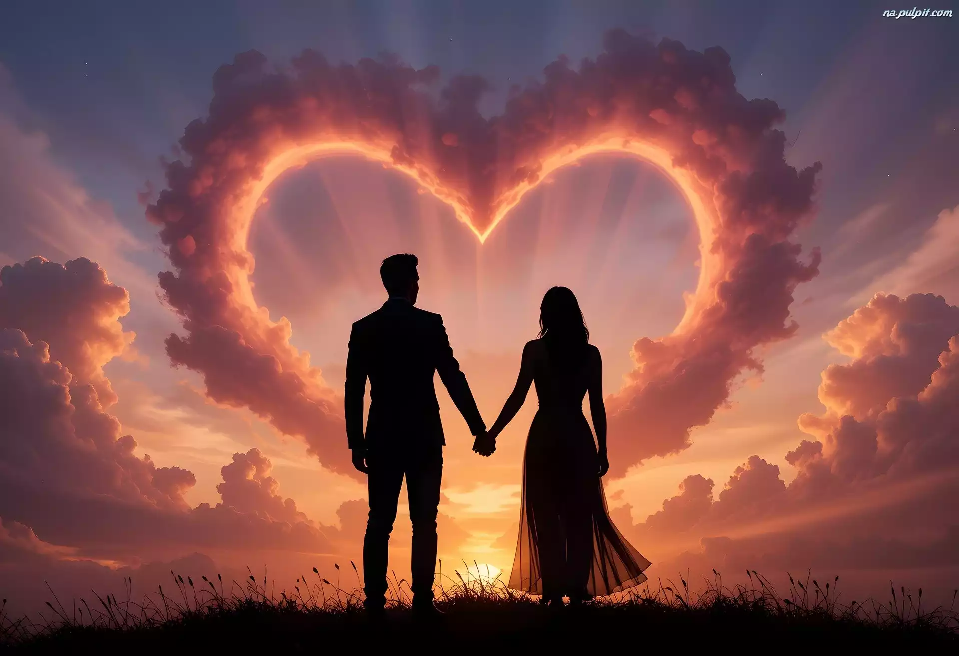 Chmury, Kobieta, Mężczyzna, Grafika, Serce