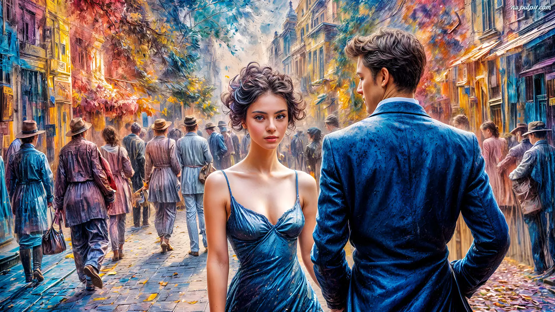 Miasto, Kobieta, Mężczyzna, Grafika, Ulica Na Pulpit