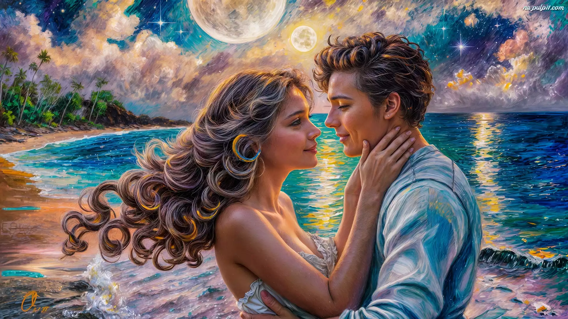 Morze, Kobieta, Mężczyzna, Grafika, Zakochani Na Pulpit