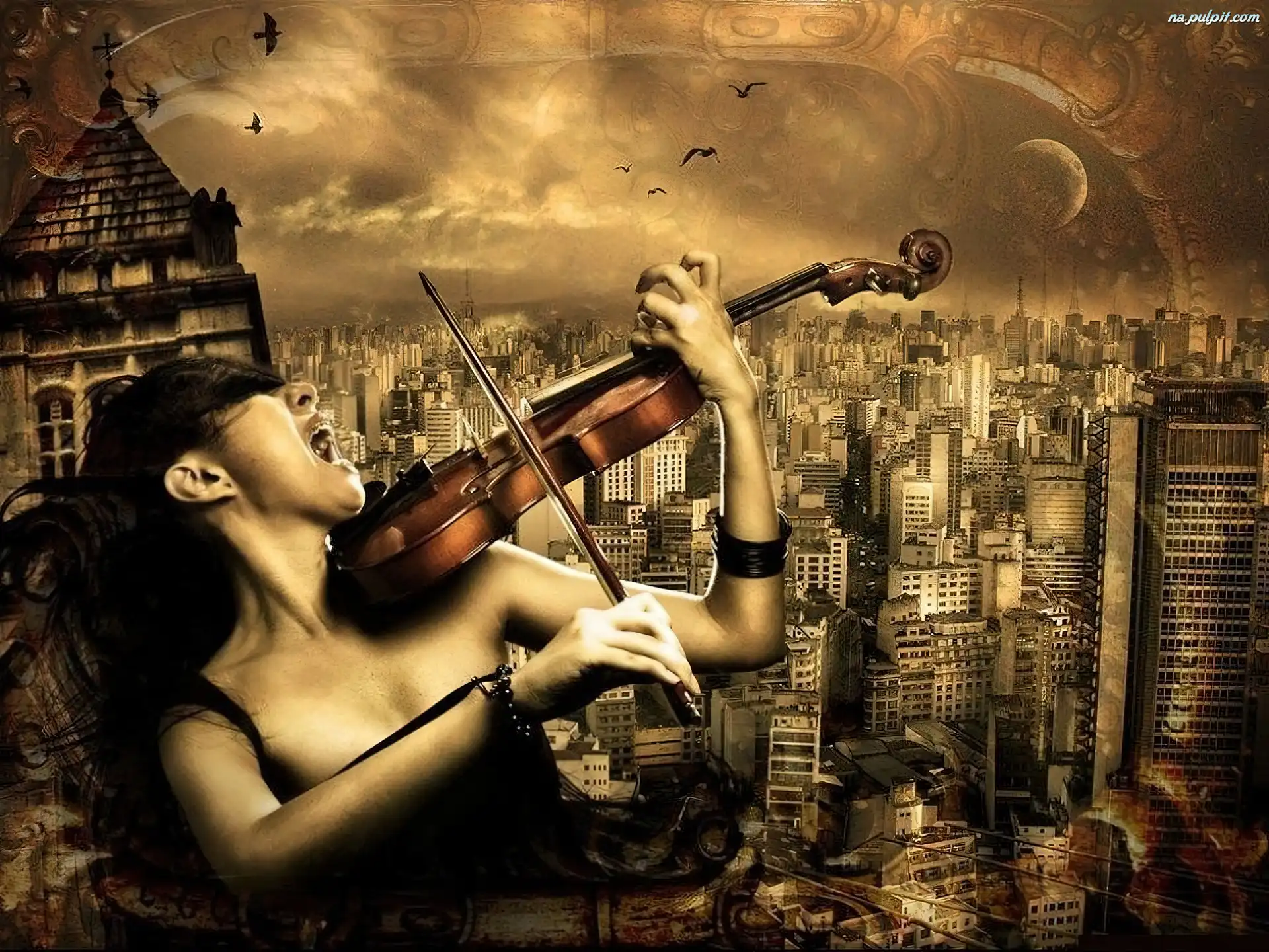 Miasto, Kobieta, Skrzypce Na Pulpit
