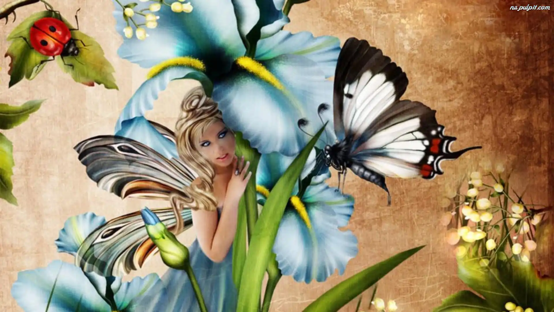 Motyle, Kobieta, Kwiaty Na Pulpit