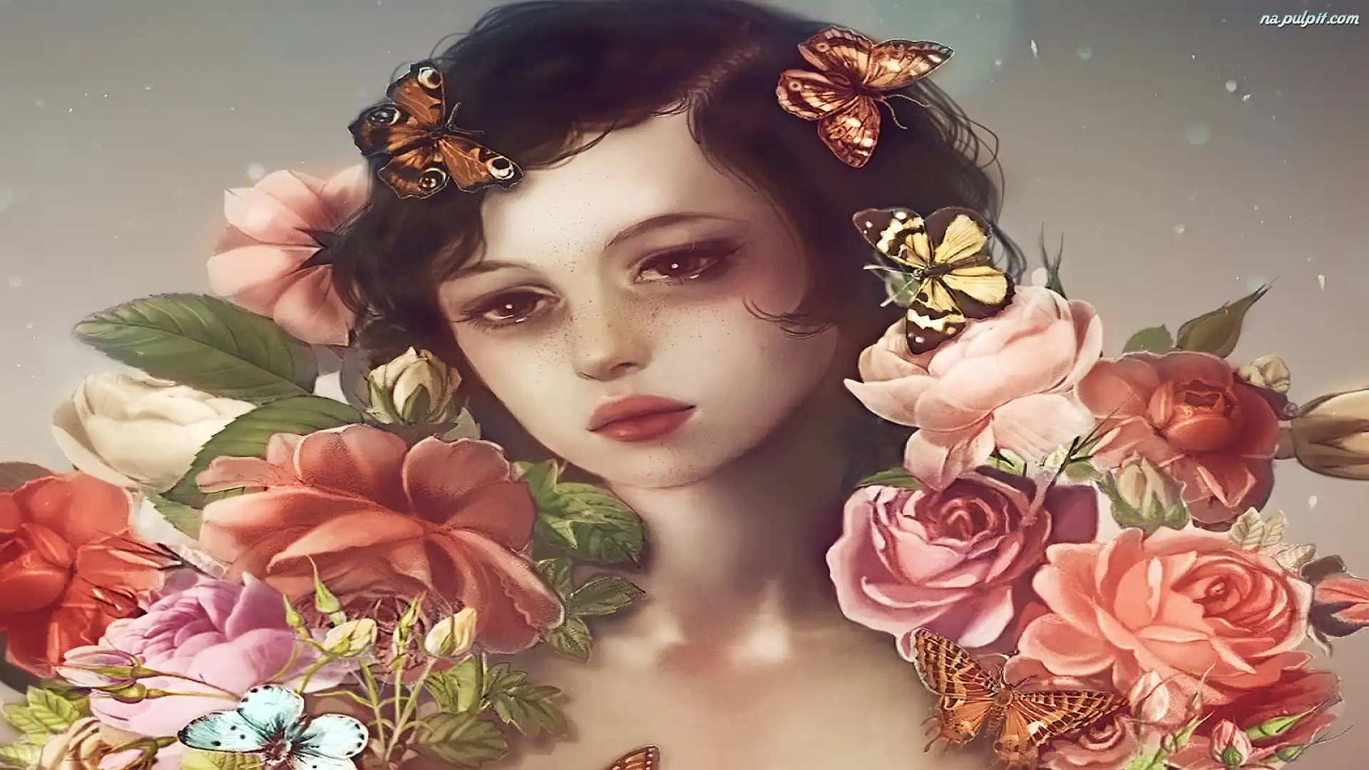 Motyle, Kobieta, Kwiaty Na Pulpit