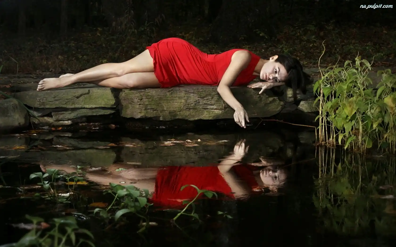 Odbicie, Kobieta, Jeziorko Na Pulpit
