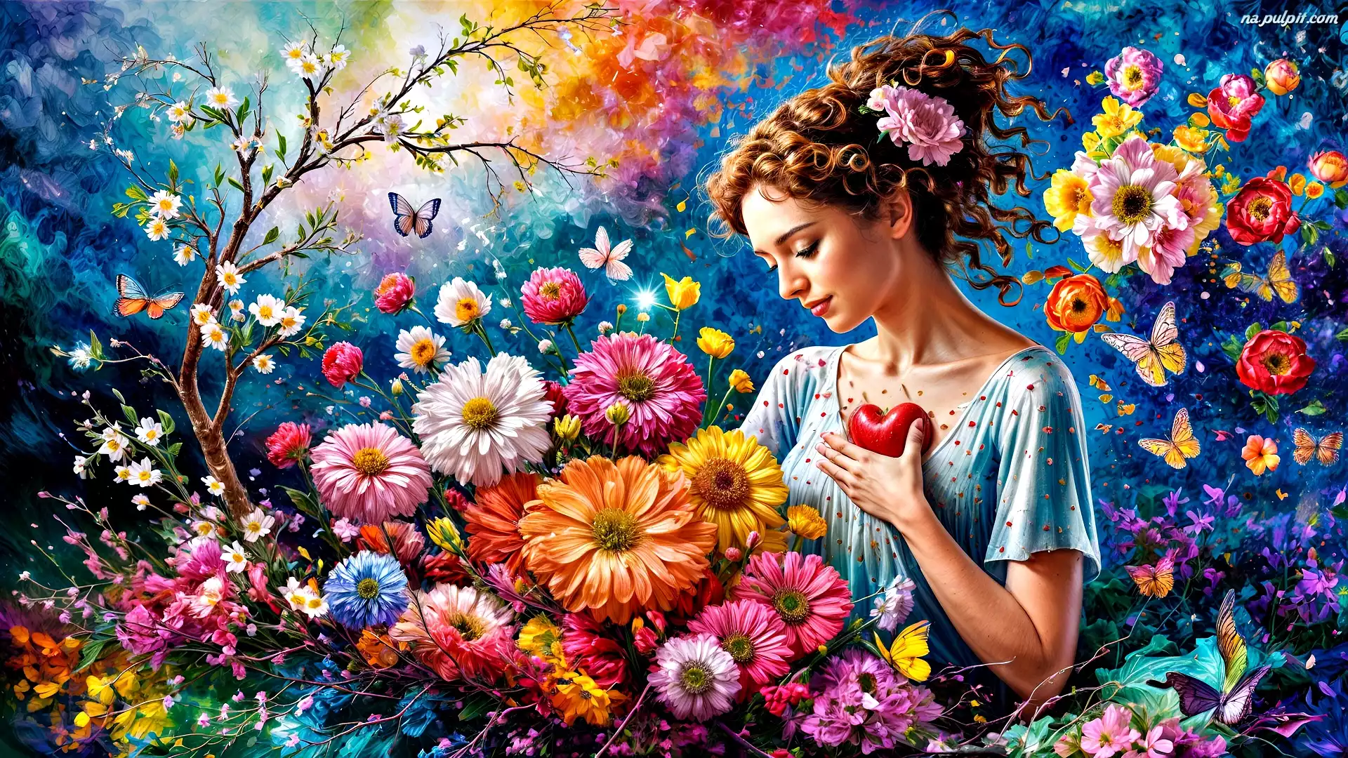 Kwiaty, Kobieta, Ogród, Grafika, Kolorowe Na Pulpit