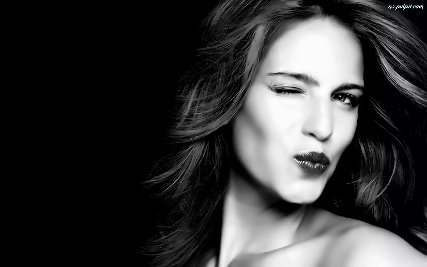 Czarno-białe, Przymrużone, Kobieta, Oko