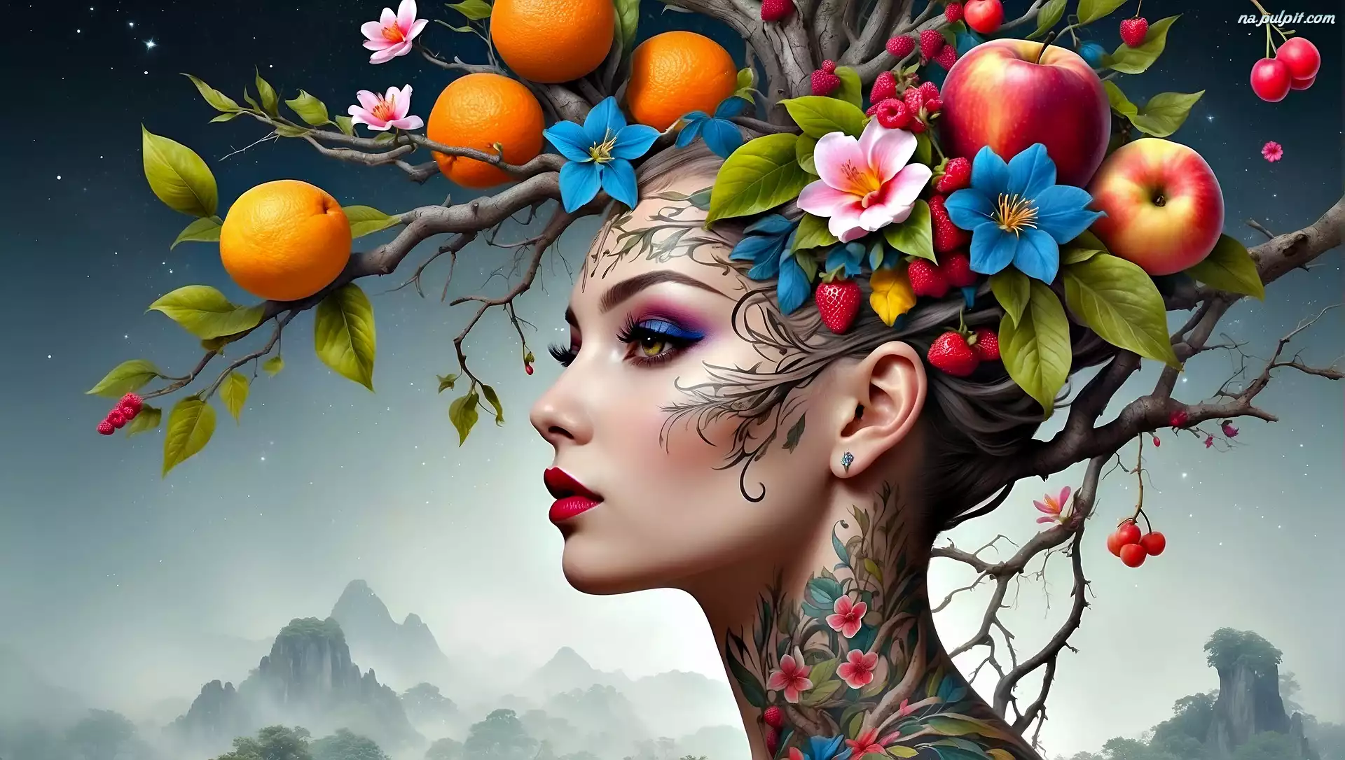 Makijaż, Kobieta, Owoce, 2D, Kwiaty Na Pulpit