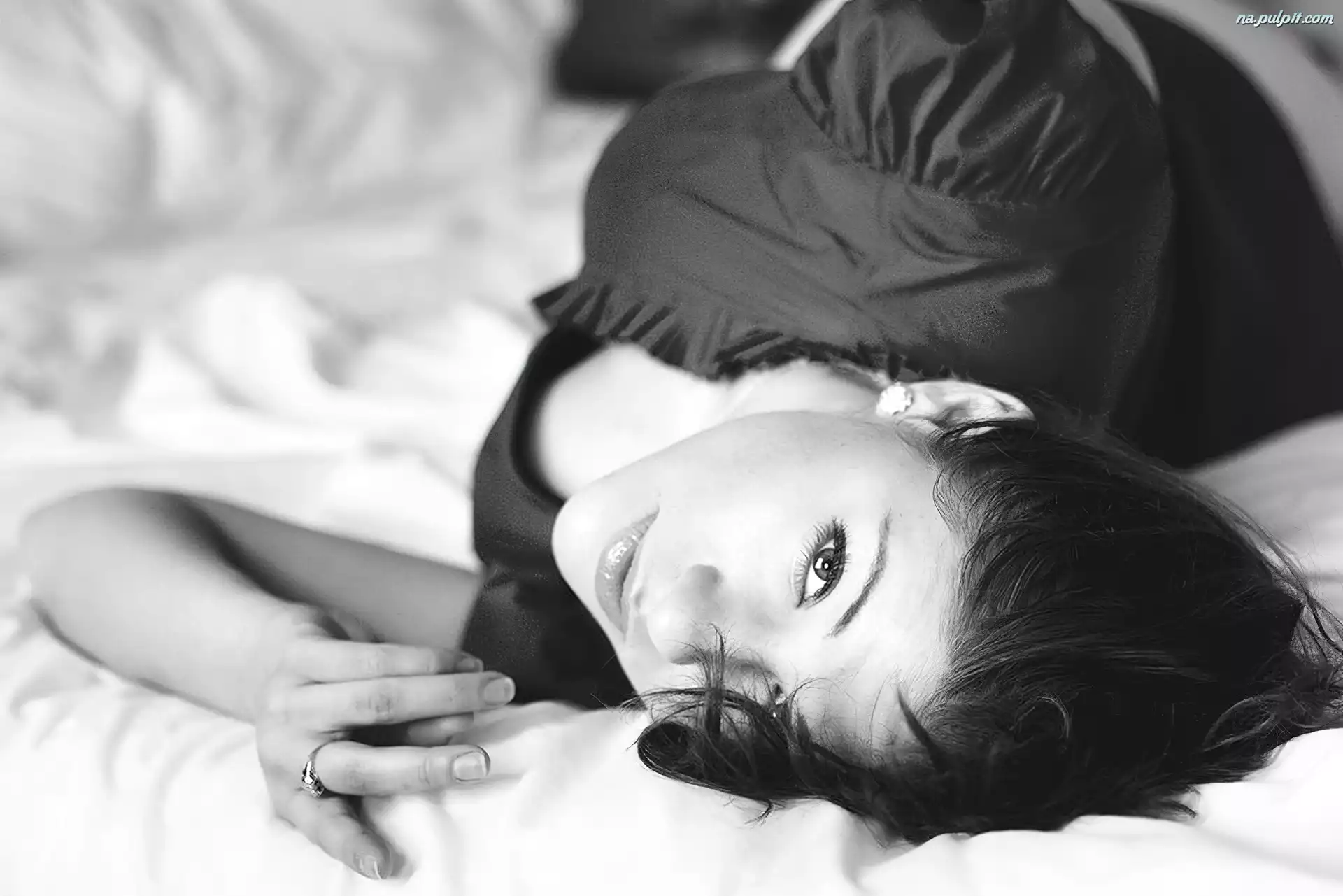 Łóżko, Kobieta, Brunetka Na Pulpit