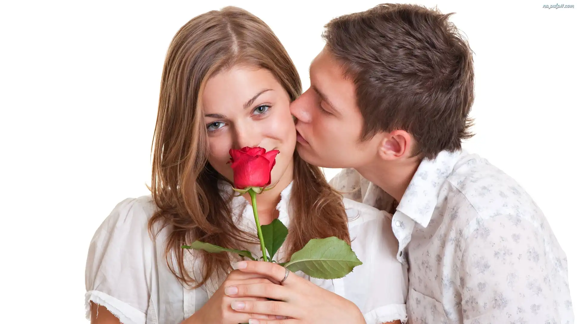 Kobieta, Róża, Pocałunek, Mężczyzna, Para, Czerwona Na Pulpit