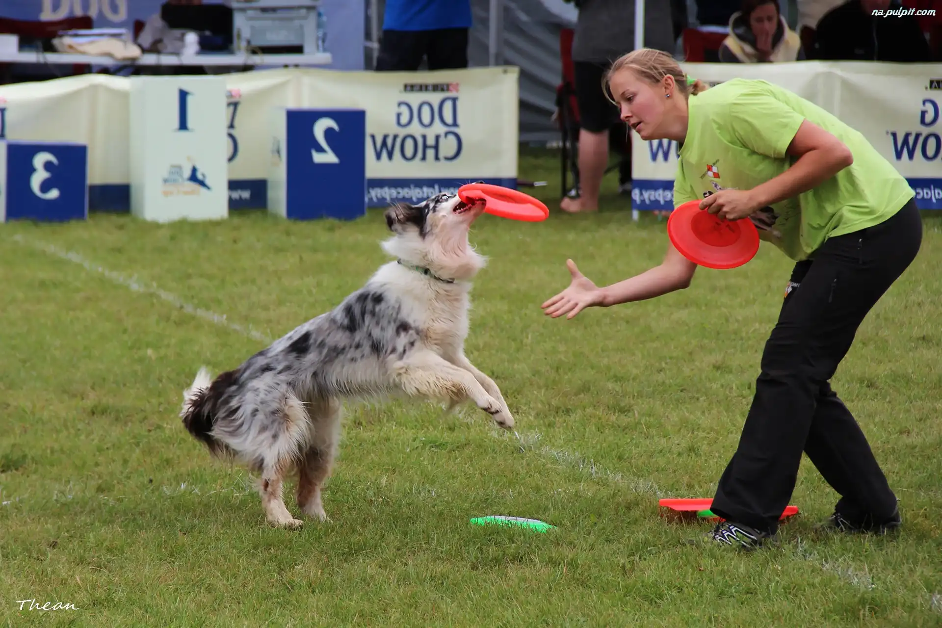 Kobieta, Border Collie, Pies, Frisbee Na Pulpit