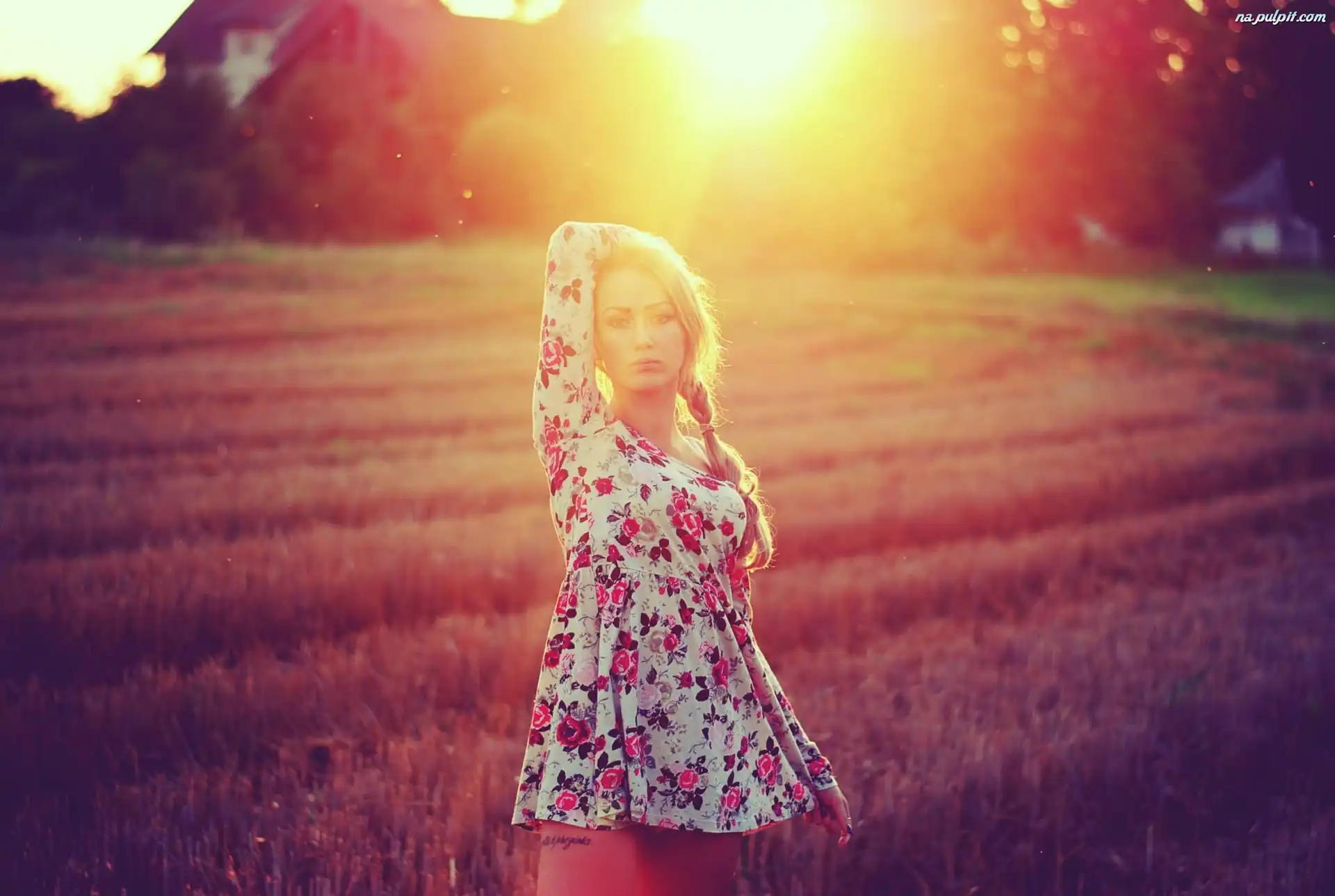 Światło, Pole, Blondynka, Kobieta, Przebijające