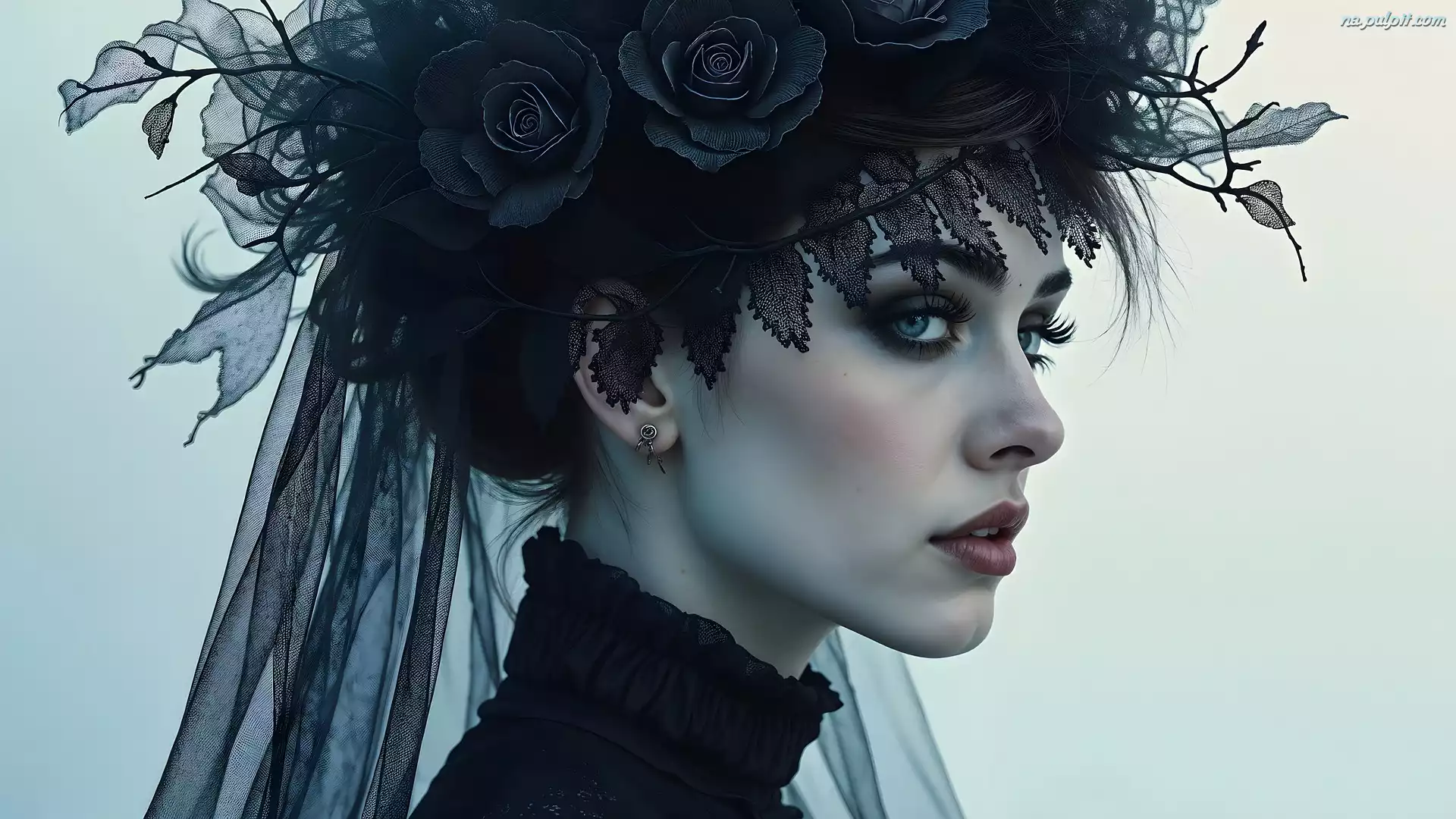 Welon, Kobieta, Półprofil, AI, Czarny Na Pulpit