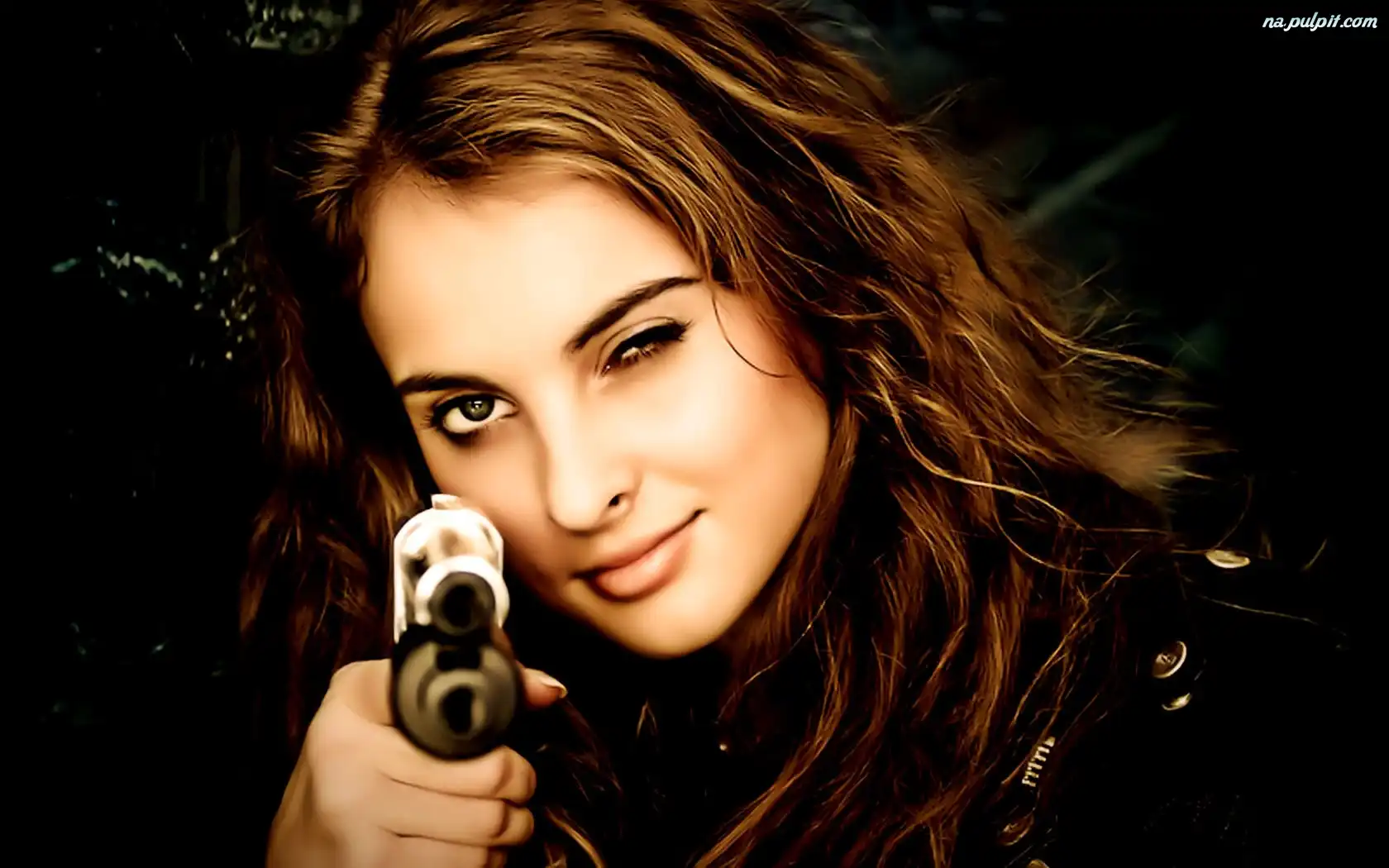 Portret, Kobieta, Broń