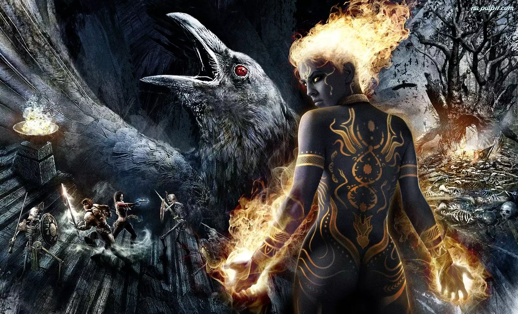 Ptak, Kobieta, Płomienie Na Pulpit