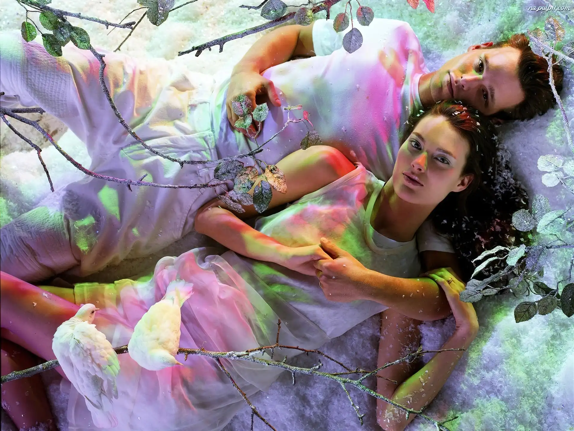 Śniegu, Ptaki, Mężczyzna, Kobieta, Płatki Na Pulpit
