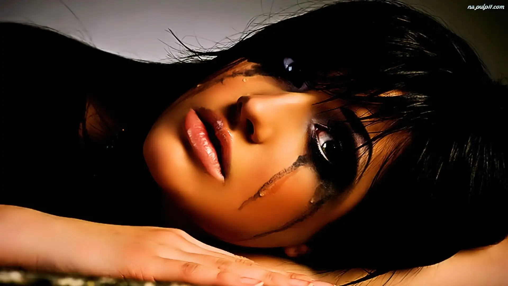 Łzy, Rozmazany, Brunetka, Kobieta, Makijaż Na Pulpit