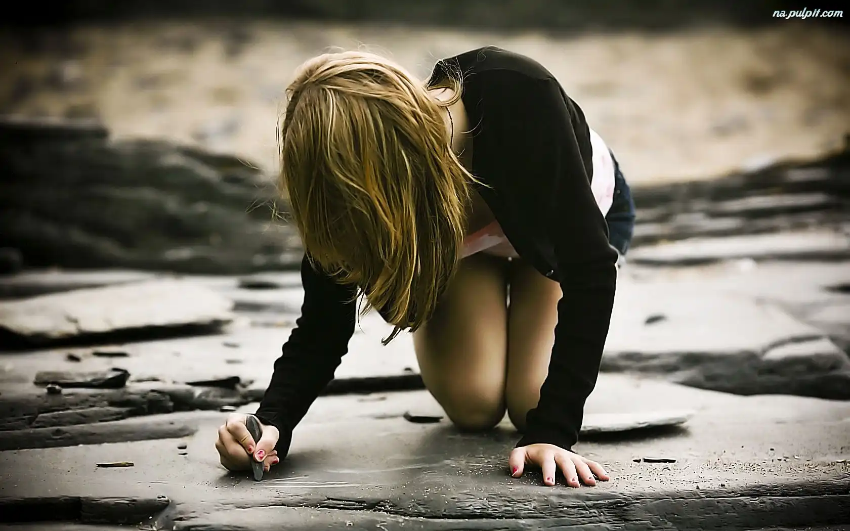 Skała, Kobieta, Rysunek Na Pulpit