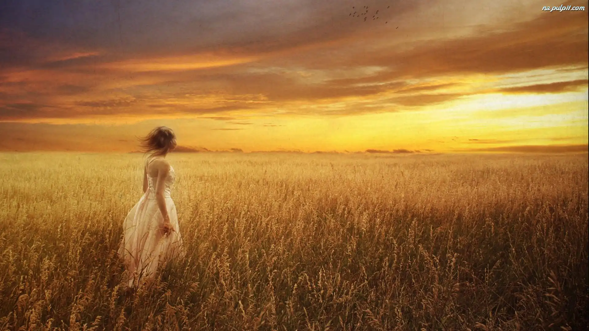 Kobieta, Łany, Zachód Słońca, Zboża Na Pulpit