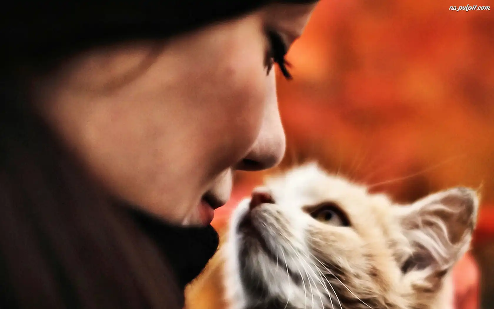 Spojrzenie, Kobieta, Kotek Na Pulpit