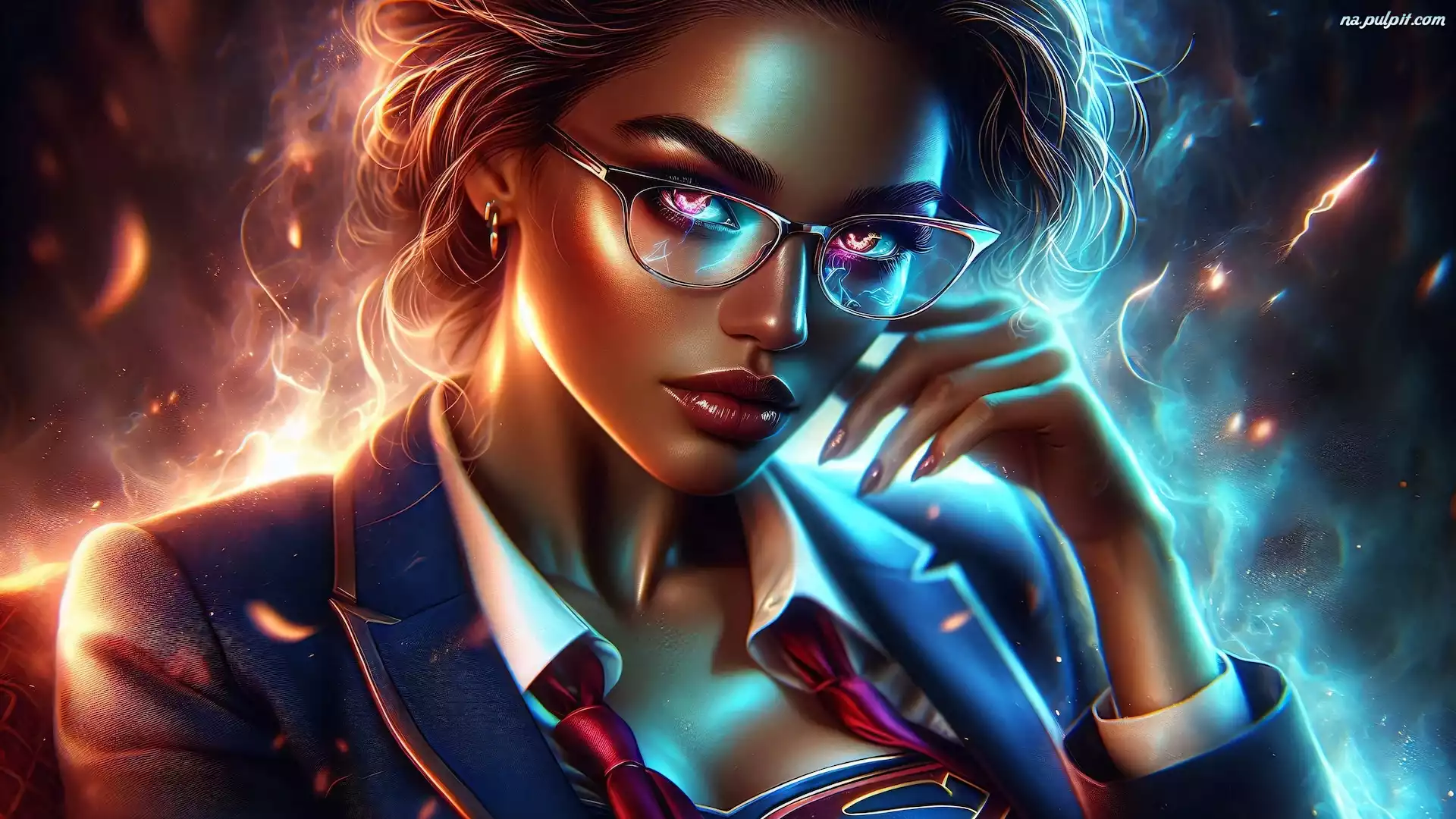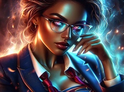 Marynarka, Kobieta, Spojrzenie, Grafika, Okulary