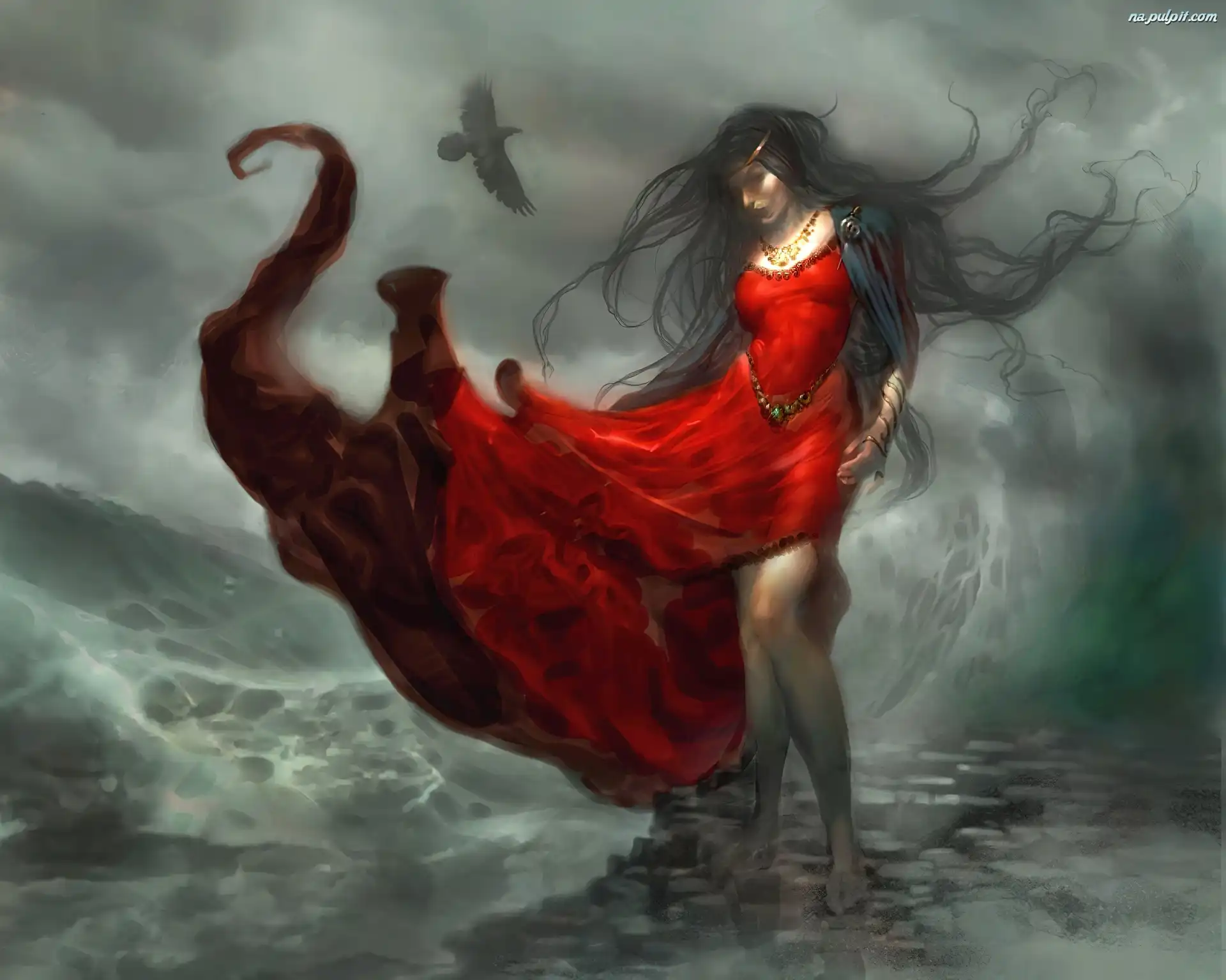 Suknia, Kobieta, Czerwona Na Pulpit