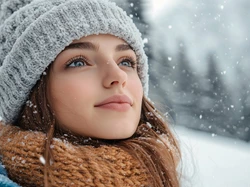 Zima, Spojrzenie, Szal, Kobieta, Szatynka, Czapka, Åšnieg Na Pulpit