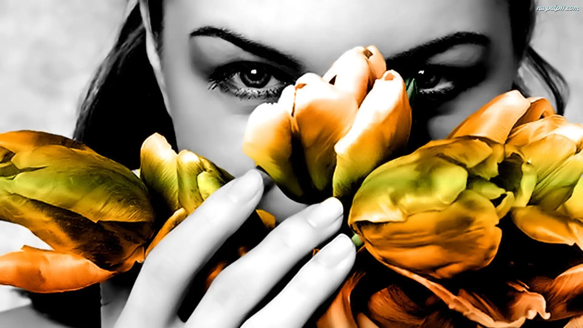 Tulipany, Kobieta, Dłoń Na Pulpit