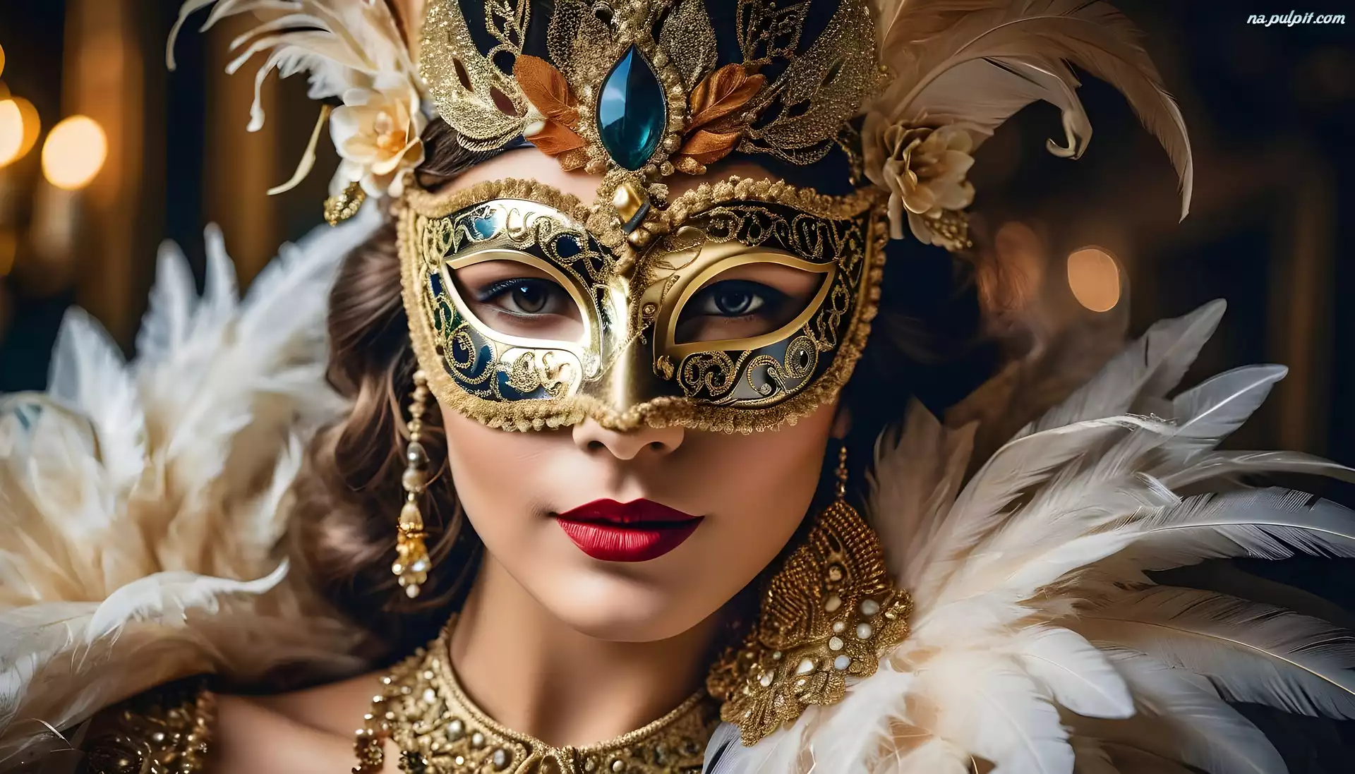 Karnawałowa, Kobieta, Twarz, Pióra, Maska Na Pulpit