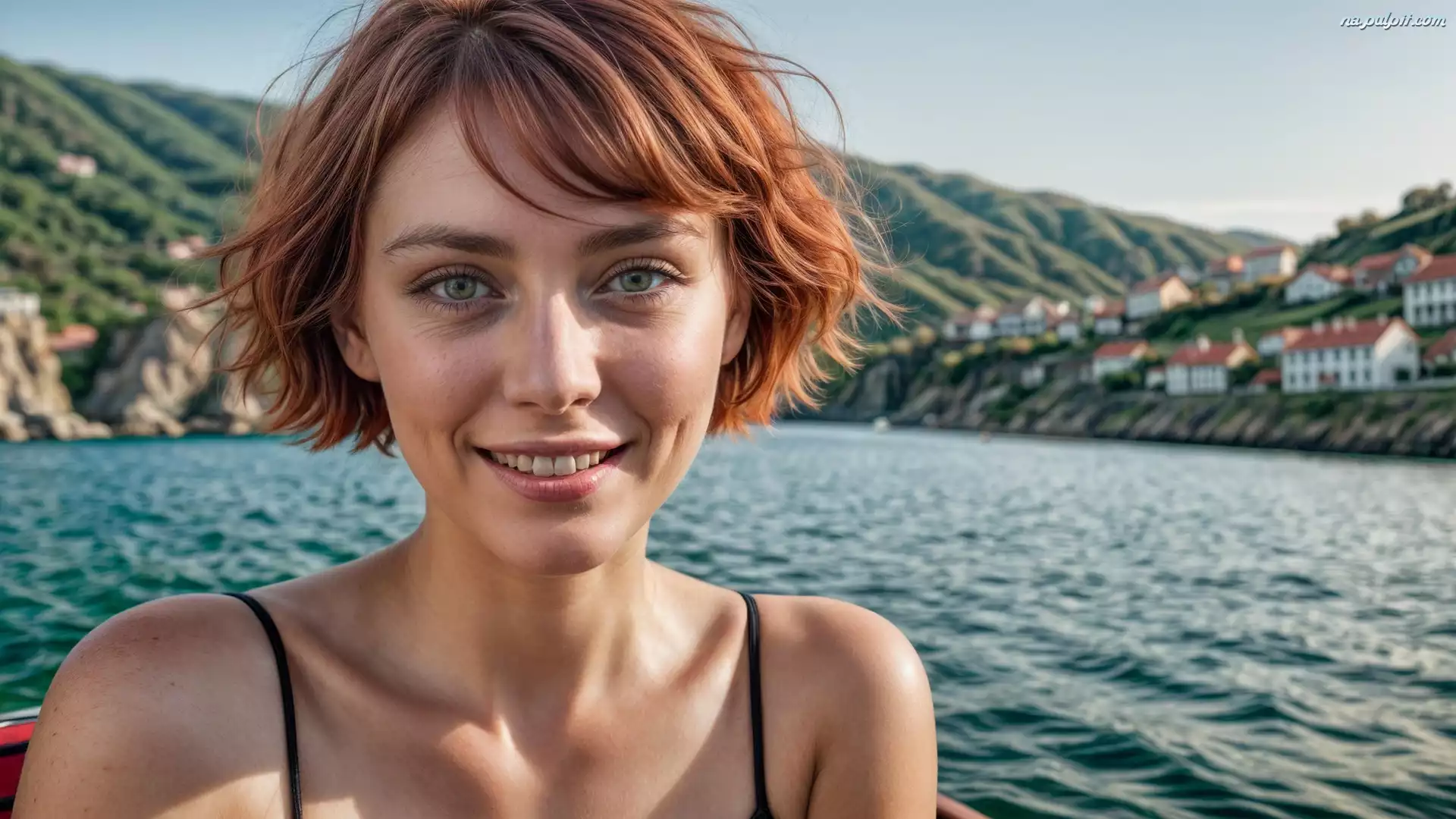 Krótkie, Kobieta, Twarz, Włosy, Uśmiech Na Pulpit