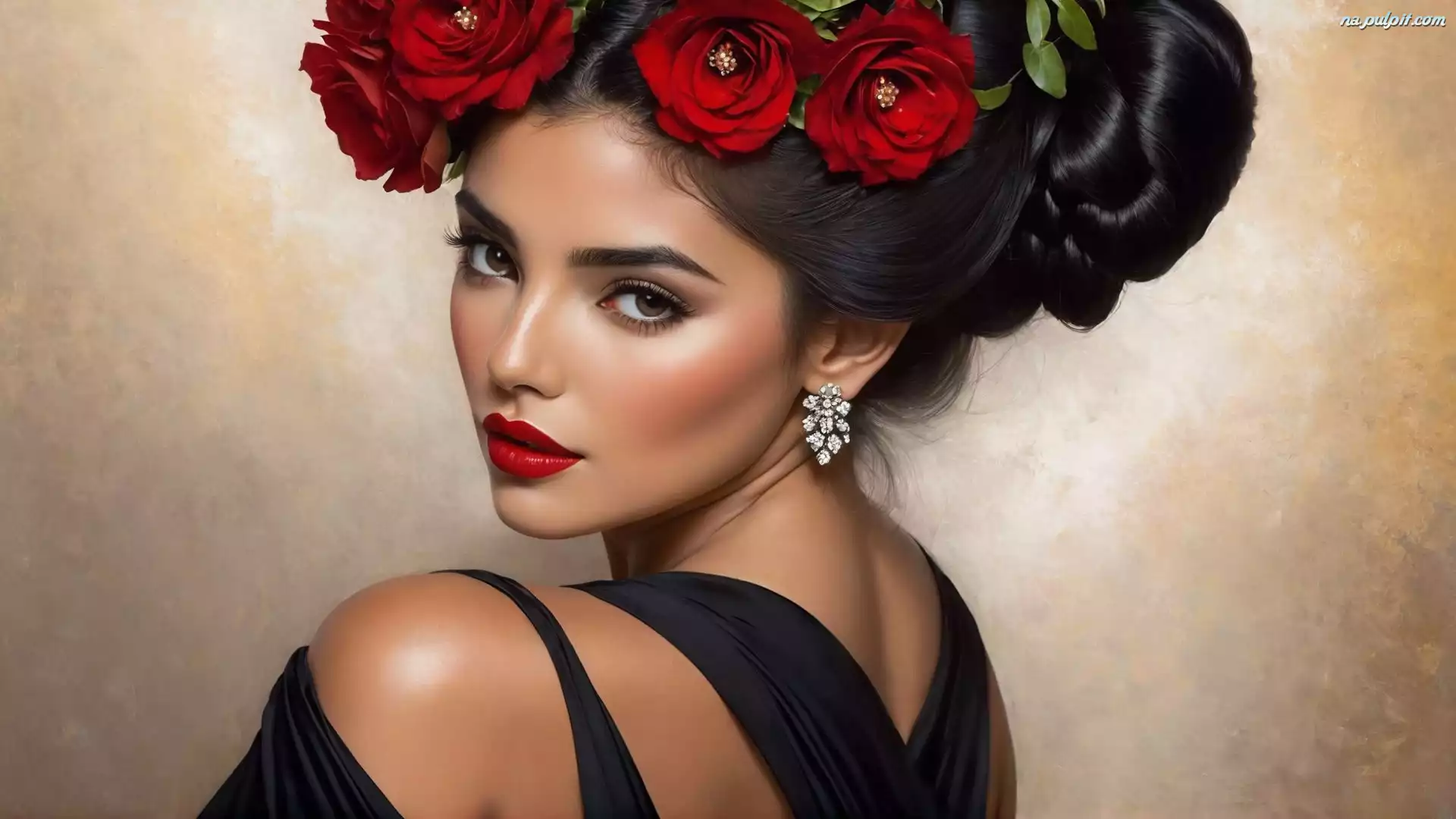 Upięte, Kobieta, Wianek, Włosy, Róże Na Pulpit