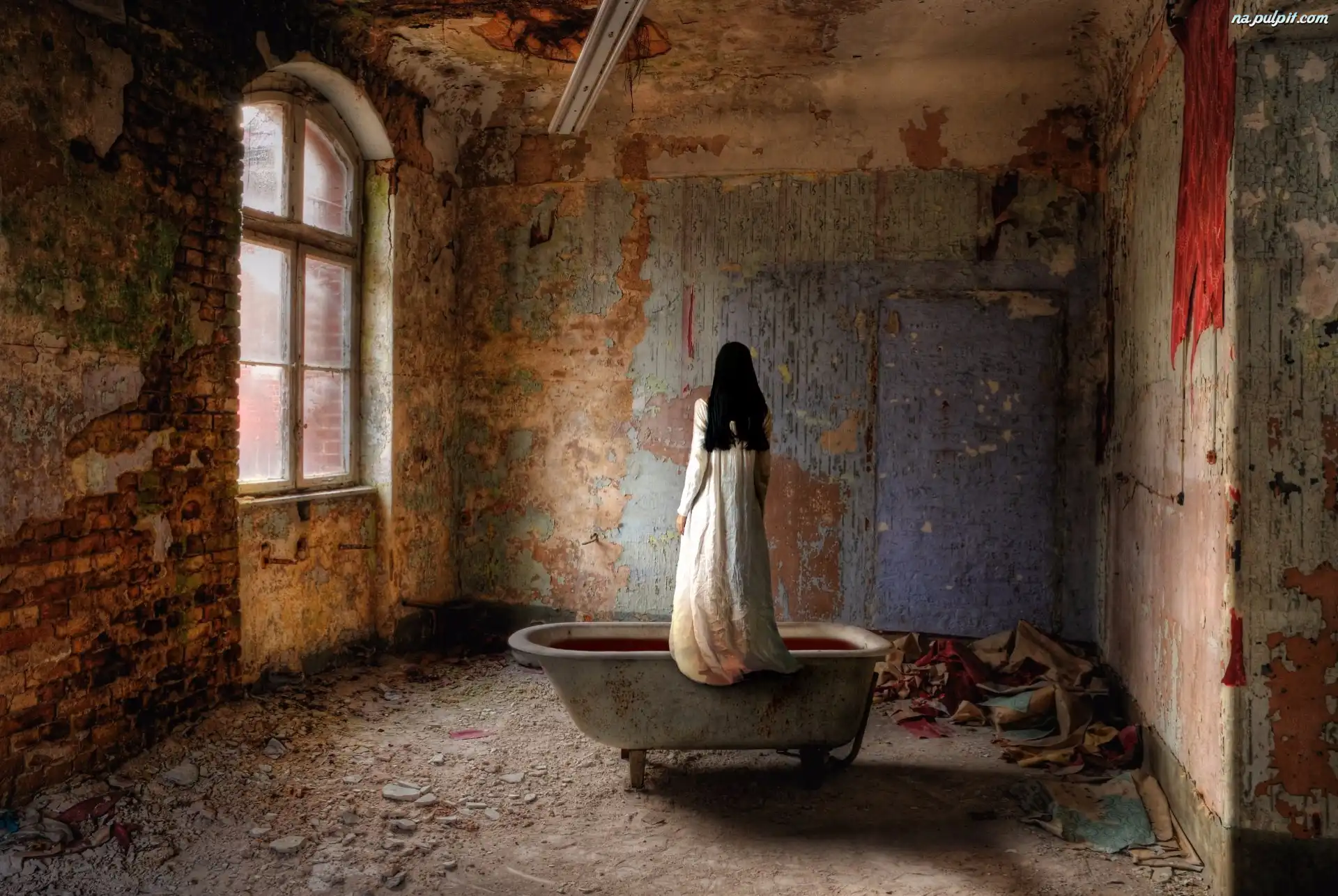 Kobieta, Wanna, Ruina, Wnętrze, Krew