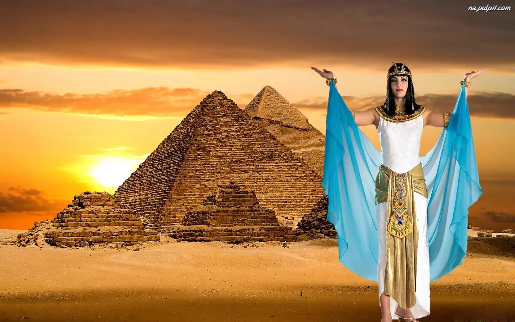 Kobieta, Słońca, Zachód, Piramidy Na Pulpit