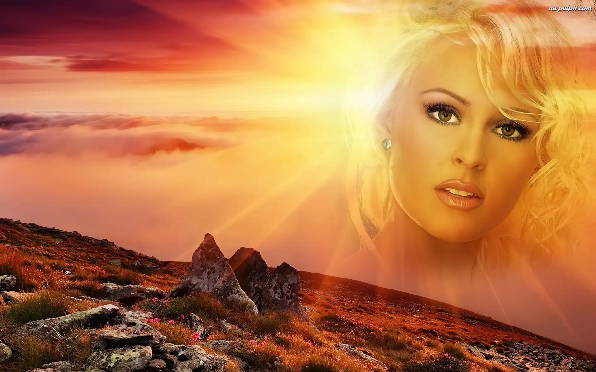 Kobiety, Skałki, Słońca, Promienie, Twarz Na Pulpit