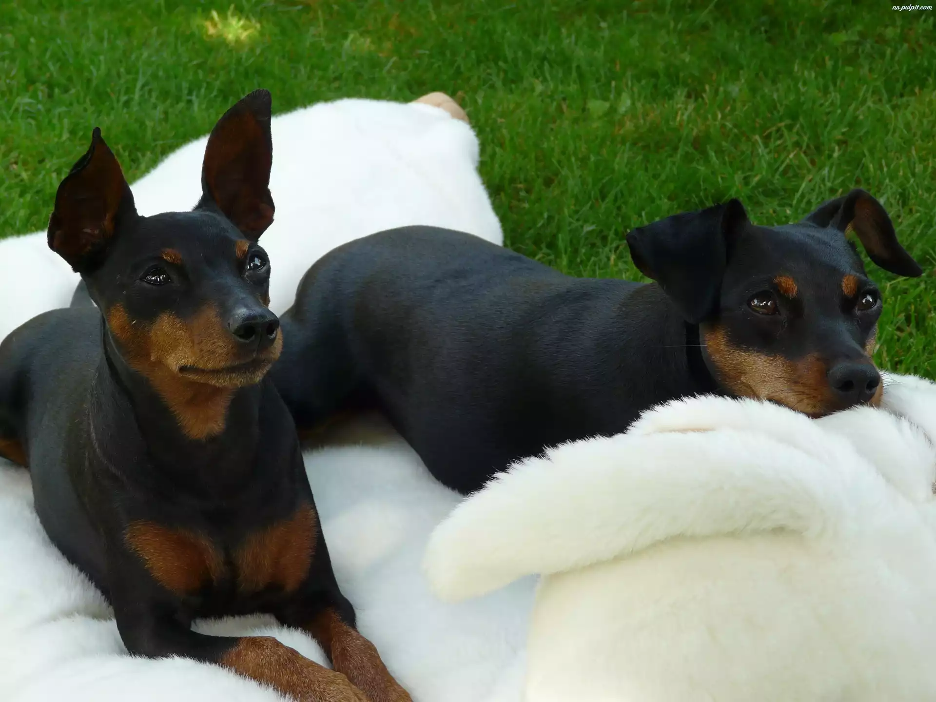 koc, Pinczery miniaturowe, dwa, biały Na Pulpit