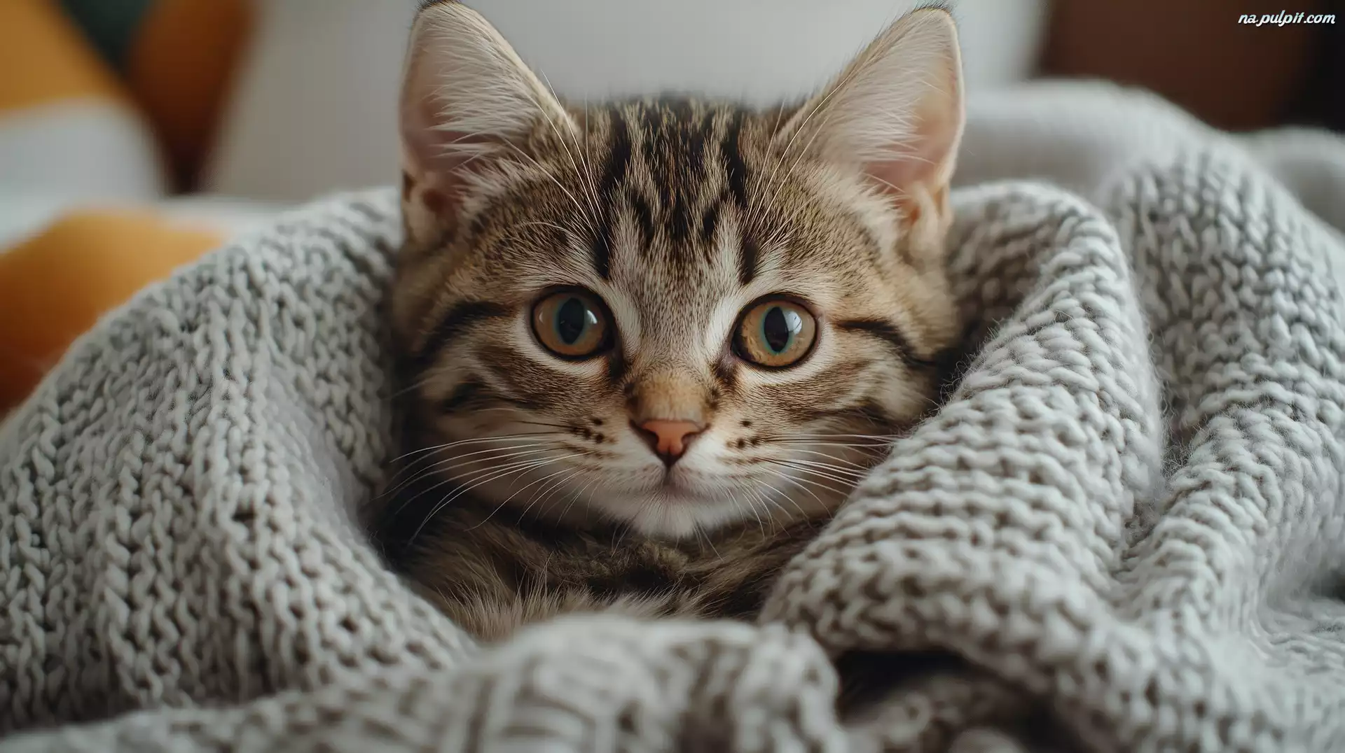 Szary, Mały, Kot, Koc Na Pulpit