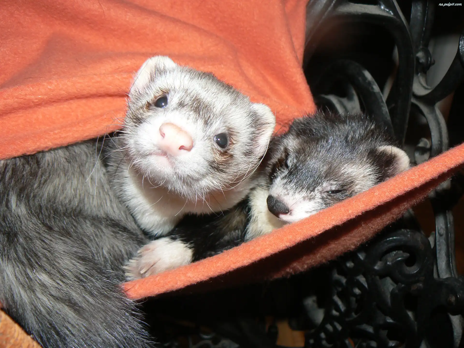 Kocyk, Fretki, Dwie, Różowy Na Pulpit