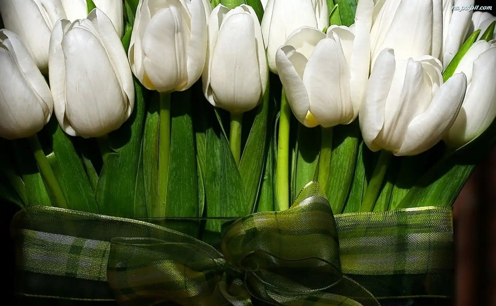 Kokardka, Tulipanów, Białych, Wiązanka, Zielona Na Pulpit