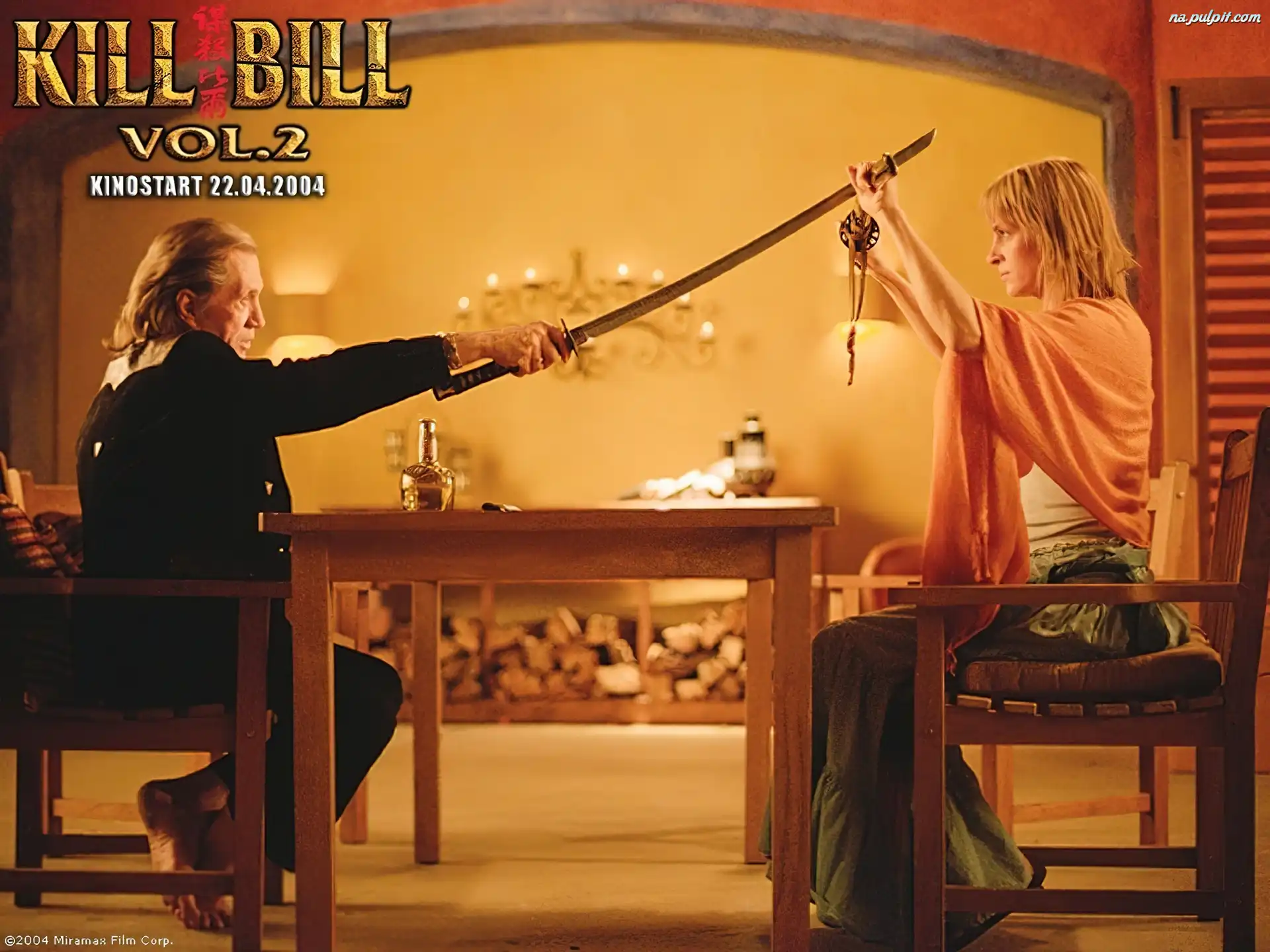 David Carradine, Kill Bill 2 ślubna, Kill Bill 2, suknia Lista, Kill Bill 2, Miecz Kolacja Uma Thurman, Kill Bill 2 Ślubna, Uma Thurman, Suknia Kill Bill 2, Skóra, Szarna, Uma Thurman