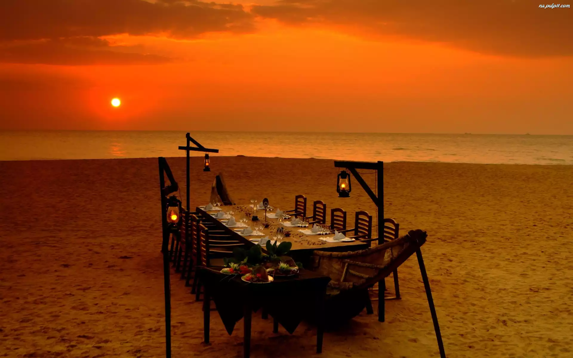 Kolacja, Zachód, Plaża, Morze, Słońca Na Pulpit