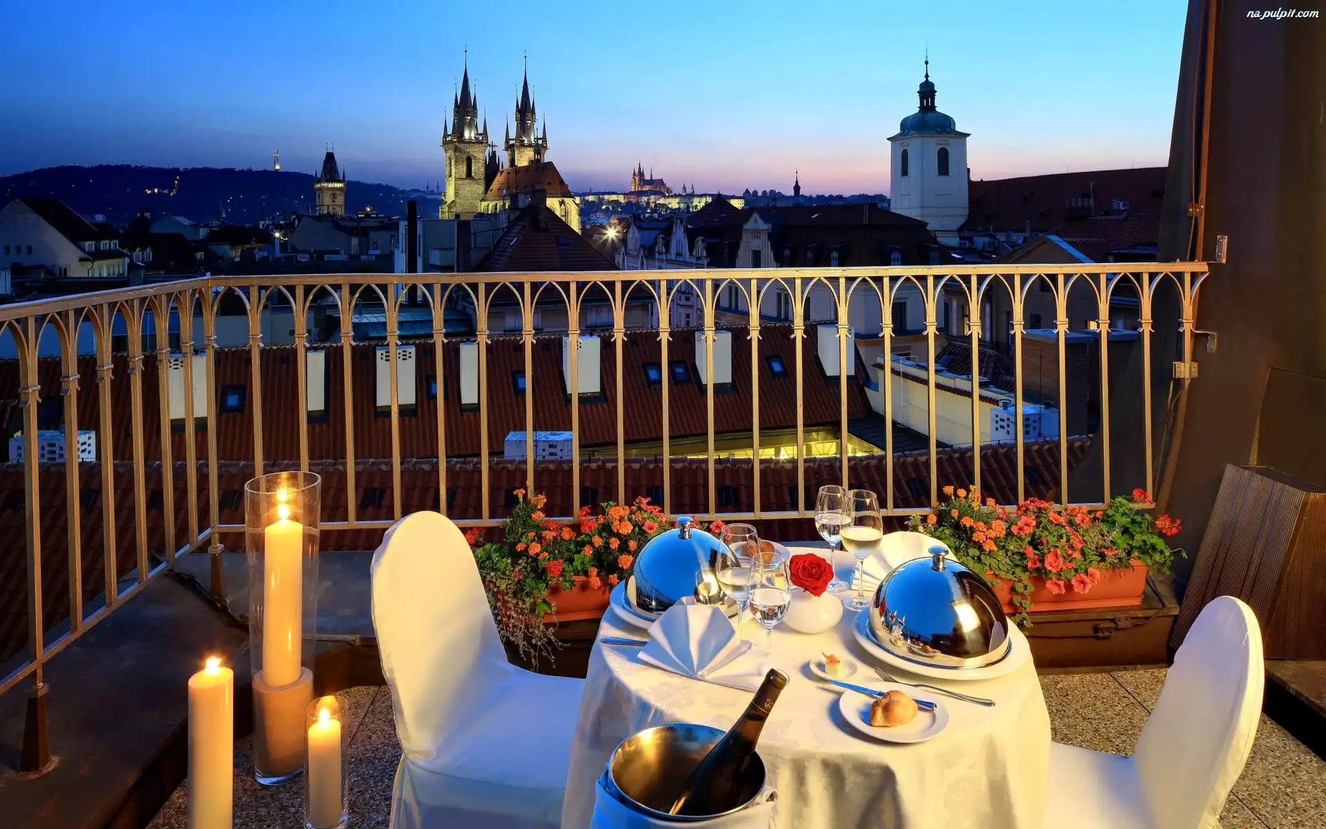 Kolacja, Balkon, Czechy, Praga, Stolik Na Pulpit